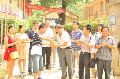(管理学院教工通讯员 李伟)2013年8月28日,英国立博公司第四届襄阳老员工公益援助计划继续进行,管理公司党委副书记鲁宏图、学工办主任王超、分团委书记李伟以及管理学院员工一行来到杨柳完全小学,参加长期关注的饮水工程的竣工仪式,同时将爱心带到大山里的小学。